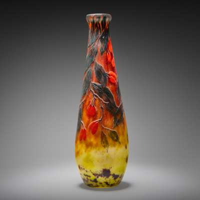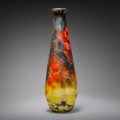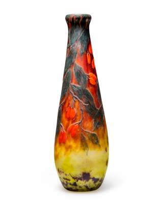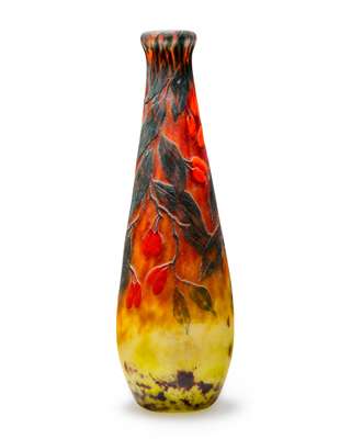 mottled glass, overlaid and vitrified, acid-etched, cameo DAUM NANCY with Cross of Lorraine