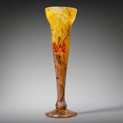 mottled glass, overlaid and acid-etched applied detail, cameo DAUM NANCY FRANCE with Cross of Lorraine