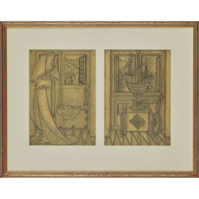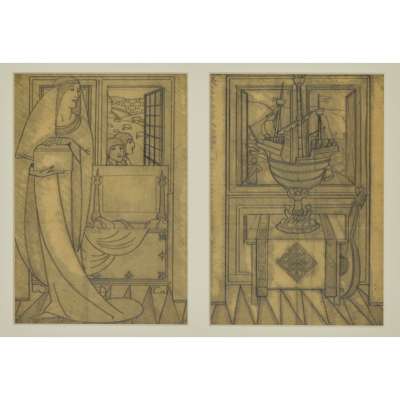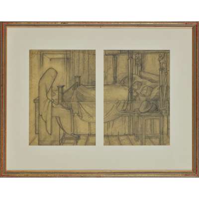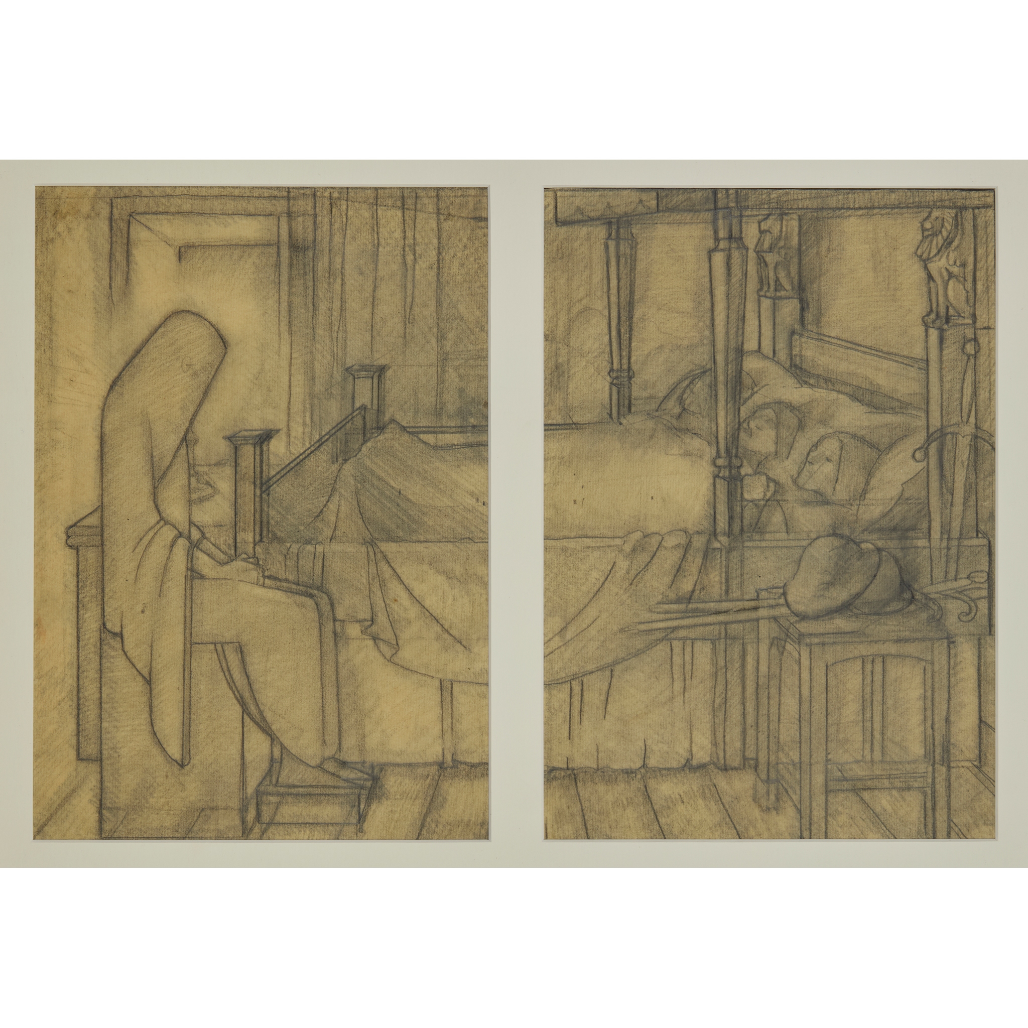 pencil, one inscribed verso ROBERT BURNS ARSA 1869-1941 ‘AND SHE HAS MADE FOR THEM A BED’ (THE WYFE OF USHER'S WELL), framed (2)