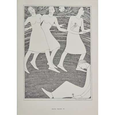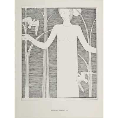 to include; off-set lithographic print, ‘Girl at Window’ 1952, signed in pencil lower right, unframed, 34.5cm x 27cm; off-set lithographic print, ‘Woman with Birds' 1947, signed in pencil lower right, unframed, 34.5cm x 28.5cm; off-set lithographic print, ‘Spring Frieze’ 1945, signed in pencil lower right, unframed, 38.5cm x 28cm; off-set lithographic print, ‘Woman and Trees’ 1931, signed in pencil lower right, unframed, 33cm x 22.5cm; off-set lithographic print, ‘Night’ 1930, signed in pen lower right, unframed, 31.5cm x 24cm; off-set lithographic print, ‘Dance’ 1950, signed in pen lower right, unframed, 35cm x 24.5cm (6)