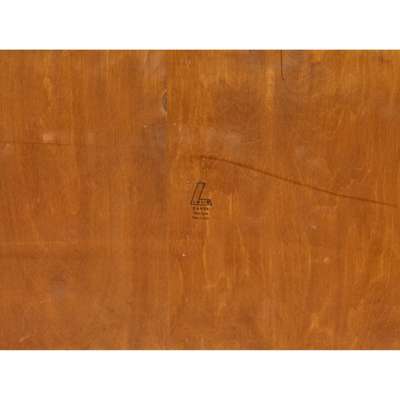 teak, inset maker's label