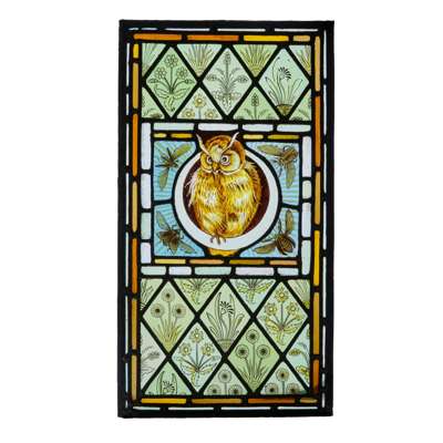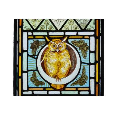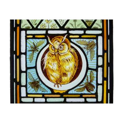 PAIR OF ARTS & CRAFTS STAINED GLASS 'OWL' PANELS, CIRCA 1880