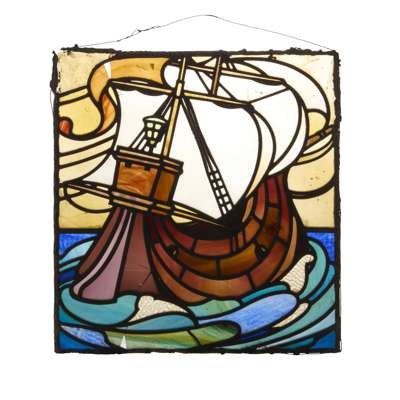 GALLEON STAINED GLASS PANEL, CIRCA 1920