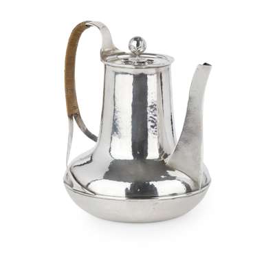 silver, with wicker-covered handle, stamped maker's mark L&Co, hallmarked Birmingham 1903, no. 5208