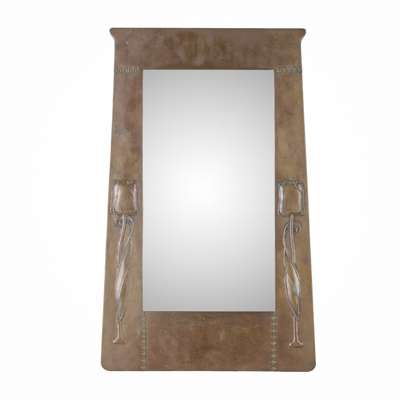 repoussé-decorated copper, mirror plate, ivorine maker's label
