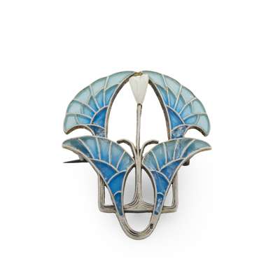silver and plique-à-jour enamel, blister pearl, stamped HL/ 900/ DEPOSE