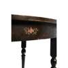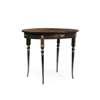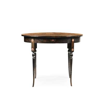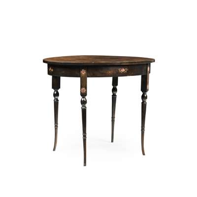 Note: This table was made for Miss Cranston's new tearoom in Buchanan Street in Glasgow in 1896. Contemporary photographs show this table was situated in the Dining Room where all the furniture and wall treatments were by George Walton whereas the lighting was by Charles Rennie Mackintosh. This table would have been set for two people and covered with a white tablecloth whilst in use. Walton also designed a tall side chair, a low side chair and an armchair for these rooms, each dark stained with hand-painted floral sprigs following the colour scheme of the walls which were designed by Charles Rennie Mackintosh. The curved form of the furniture continues the 'Glasgow Style' Art Nouveau aesthetic, whilst the Regency inspiration which the design subverts is still evident.