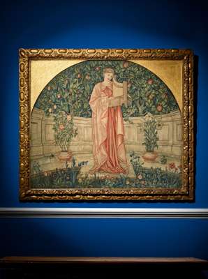 In his 1893 essay Textiles, William Morris called tapestry “the noblest of the weaving arts,” highlighting the importance of “elegance of the silhouette” and “crispness and abundance of beautiful detail” in a successful design—qualities that St Cecilia certainly embodies.