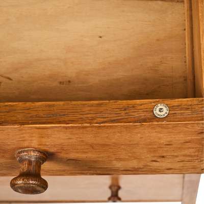 oak, bears ivorine maker's label to top drawer