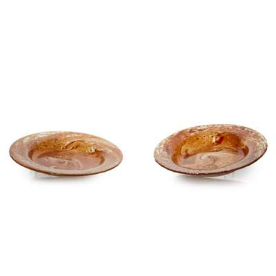 glass, comprising; a VASE, maker's label, model OF VIII, 18cm high; another VASE, model OJ IX, 12cm high; a PAIR OF SIDE PLATES, model YE IX, 19cm diameter; a PAIR OF DESSERT BOWLS, one with maker's label, model JC X, 12.5cm diameter; a SMALL BOWL, 15cm diameter; together with a MINIATURE VASE, 9cm high (8)