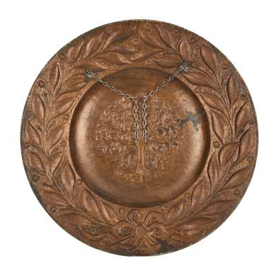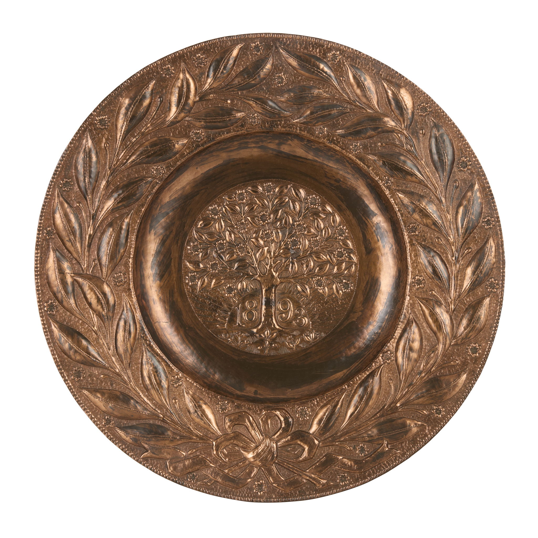 repoussé-decorated and incised copper, signed verso JOHN PEARSON 1893