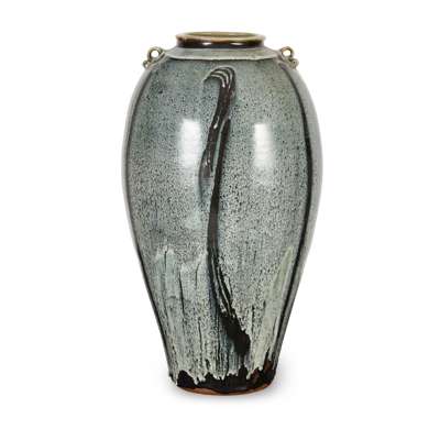 glazed stoneware, impressed maker's seal, 50cm high; together with a DRYMEN POTTERY VASE, glazed stoneware, signed to the base AM DRYMEN, 54cm high (2)