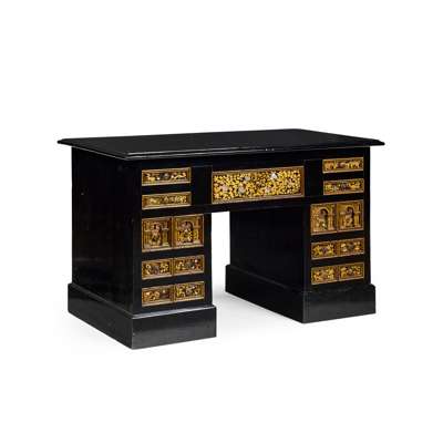 AESTHETIC MOVEMENT TWIN PEDESTAL DESK, CIRCA 1880