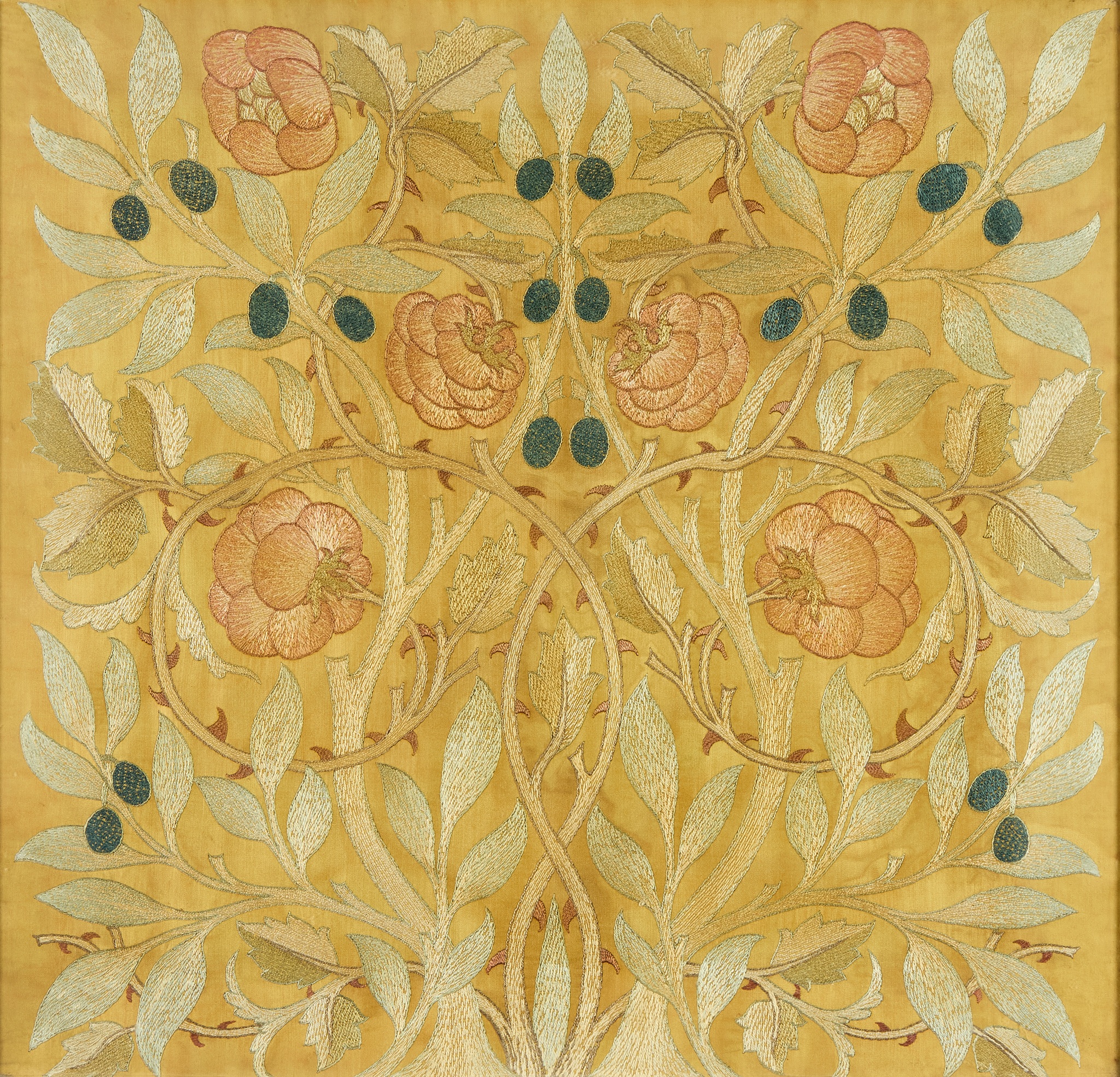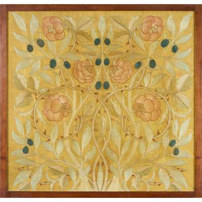'OLIVE AND ROSE' EMBROIDERED PANEL, CIRCA 1880