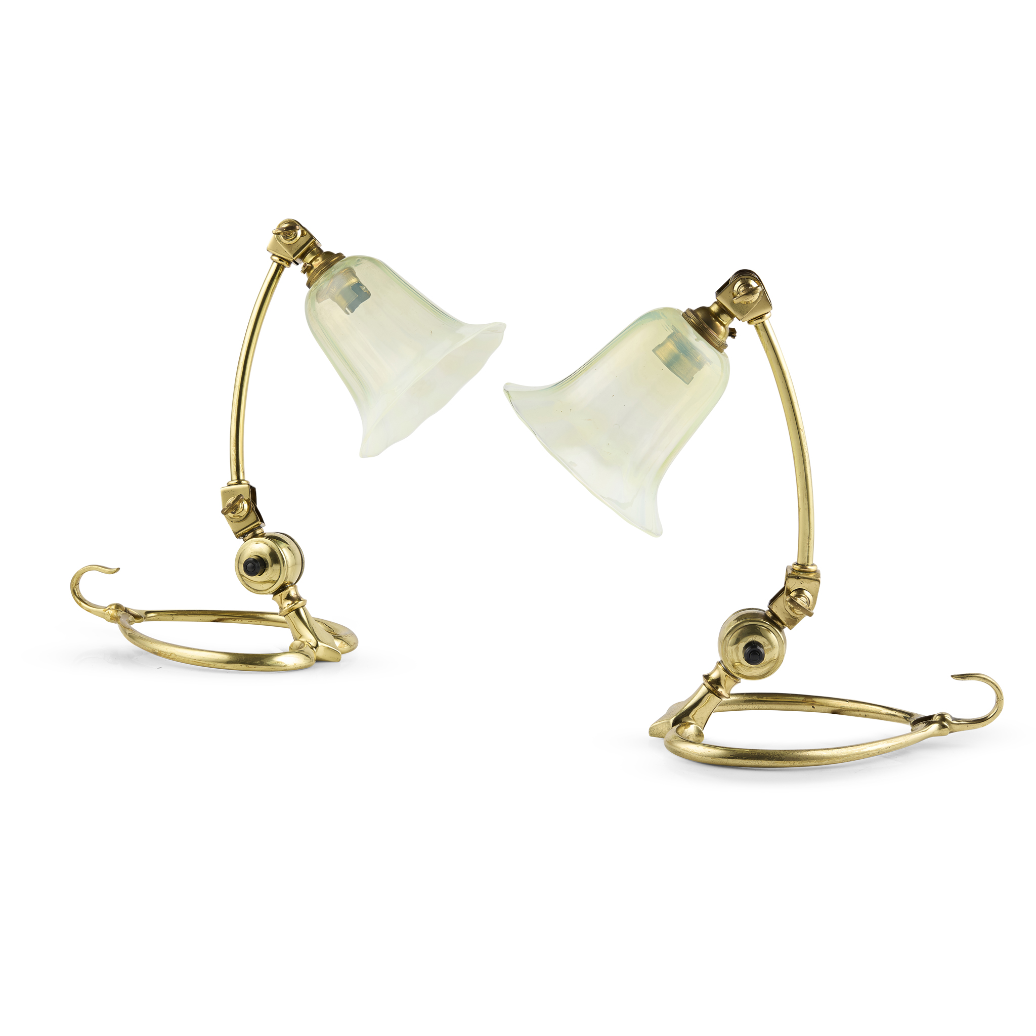 brass, with opalescent glass shades, stamped maker's marks, MN (2)
