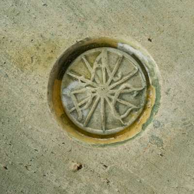 tempera-painted pottery, impressed maker's mark