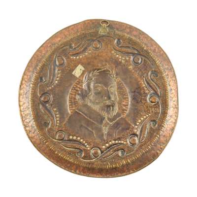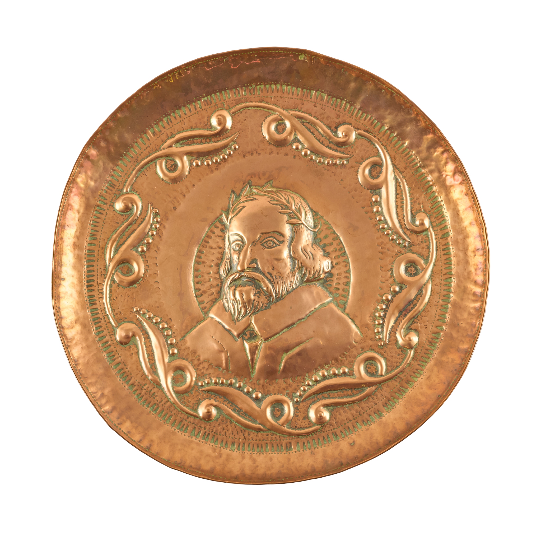 repoussé-decorated copper, signed and dated J.P. 1902