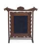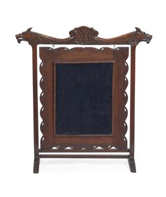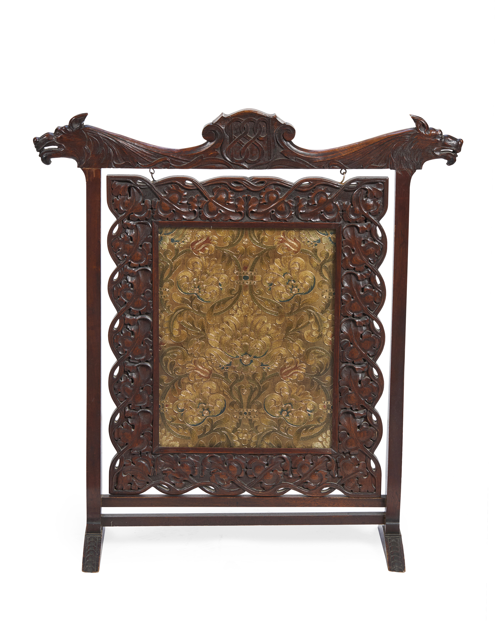 coloured silks and gold thread reserved on an unbleached linen ground, within a glazed and carved oak firescreen frame