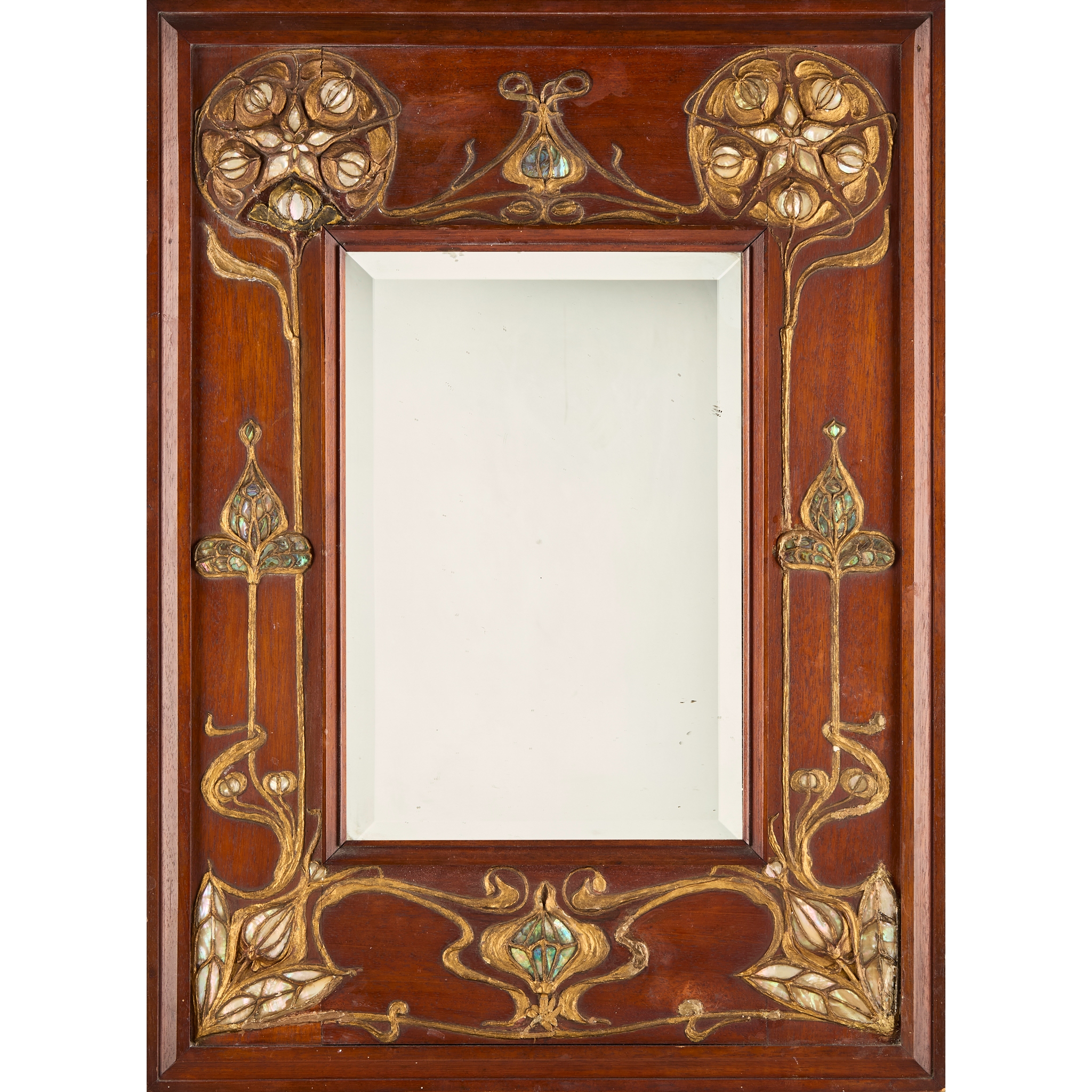 mahogany, gesso, abalone and mirrored glass