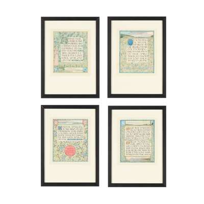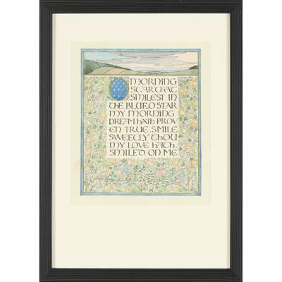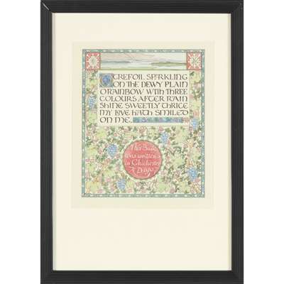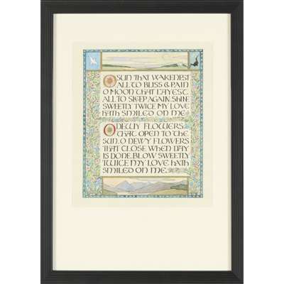 watercolour, comprising; ‘O sun that wakenest all to bliss’; ‘O morning star that smilest in the blue’; ‘O birds that warble to the morning sky’; ‘O trefoil sparkling on the dewy plain’ (4)