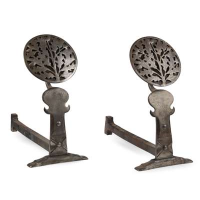 The oak leaf decoration on these fire dogs was a familiar motif, used by Cotswold designers such as Ernest Gimson and Gordon Russell, and reflects the inspiration designers found in nature and the English countryside.