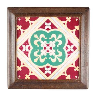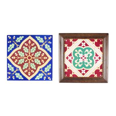 dust pressed clay, impressed maker's marks, comprising; a MINTONS CHINA WORKS SIX-INCH TILE, 15cm square; a MINTON, HOLLINS & CO 8-INCH FRAMED TILE, frame size 26cm square (2)