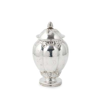 830 standard silver, stamped maker's mark GEORG JENSEN, GJ 830S, 15, stamped Dutch import marks 1920, weight 423g