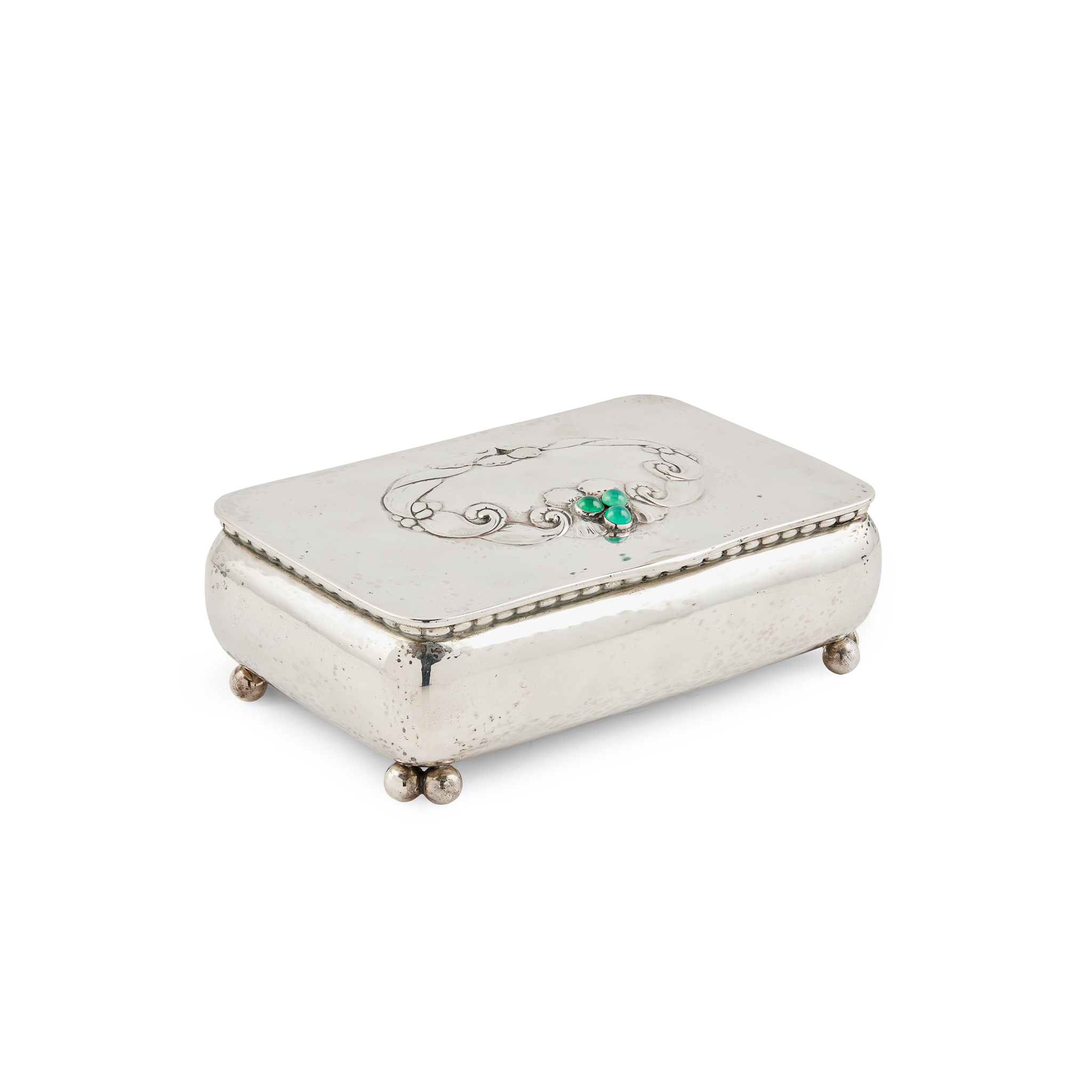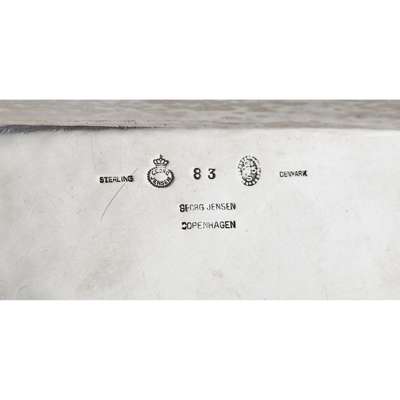 silver, set with chrysoprase cabochons, various stamped maker's marks GEORG JENSEN COPENHAGEN 83, weight including handle 466g