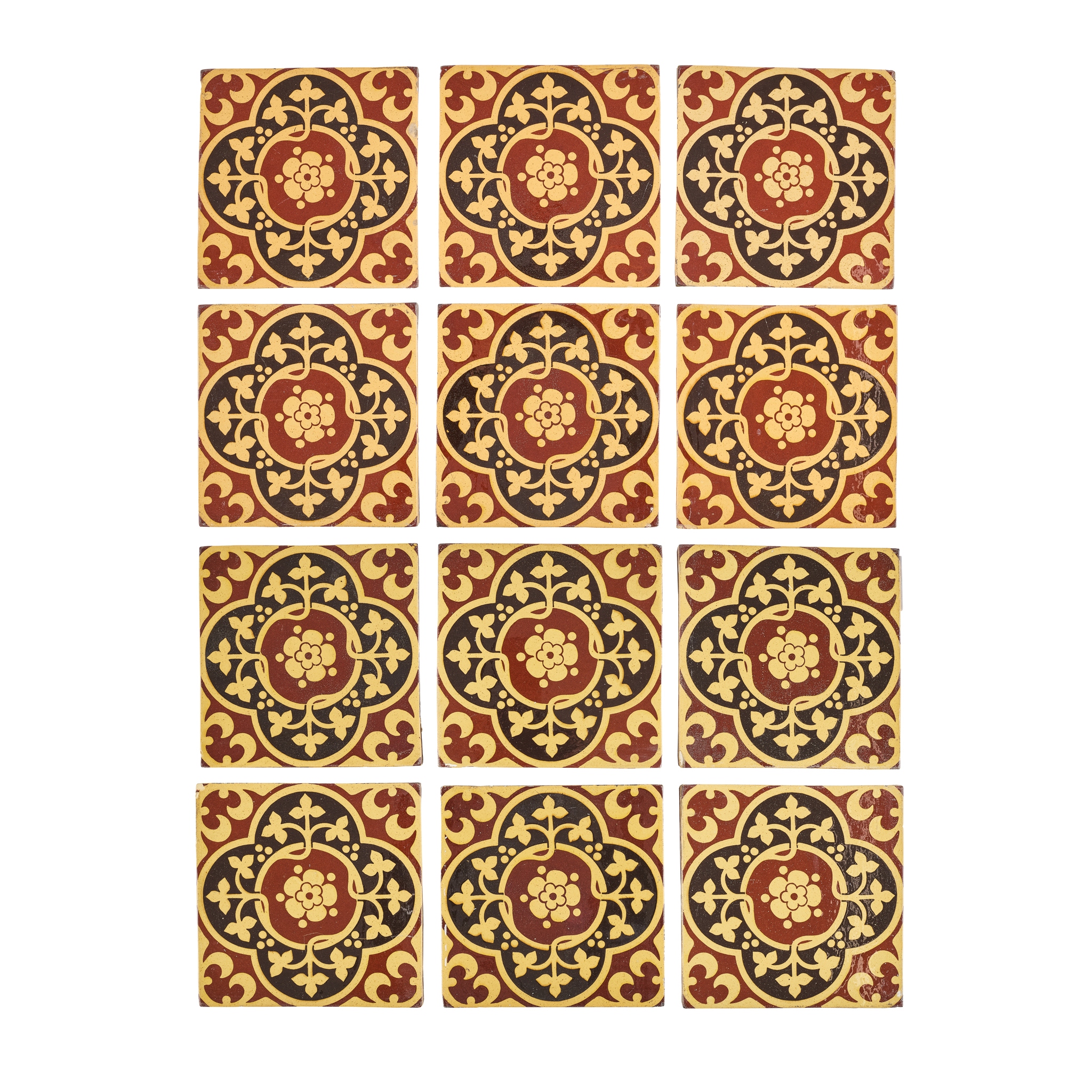 TWELVE 6-INCH GOTHIC REVIVAL ENCAUSTIC TILES, CIRCA 1860