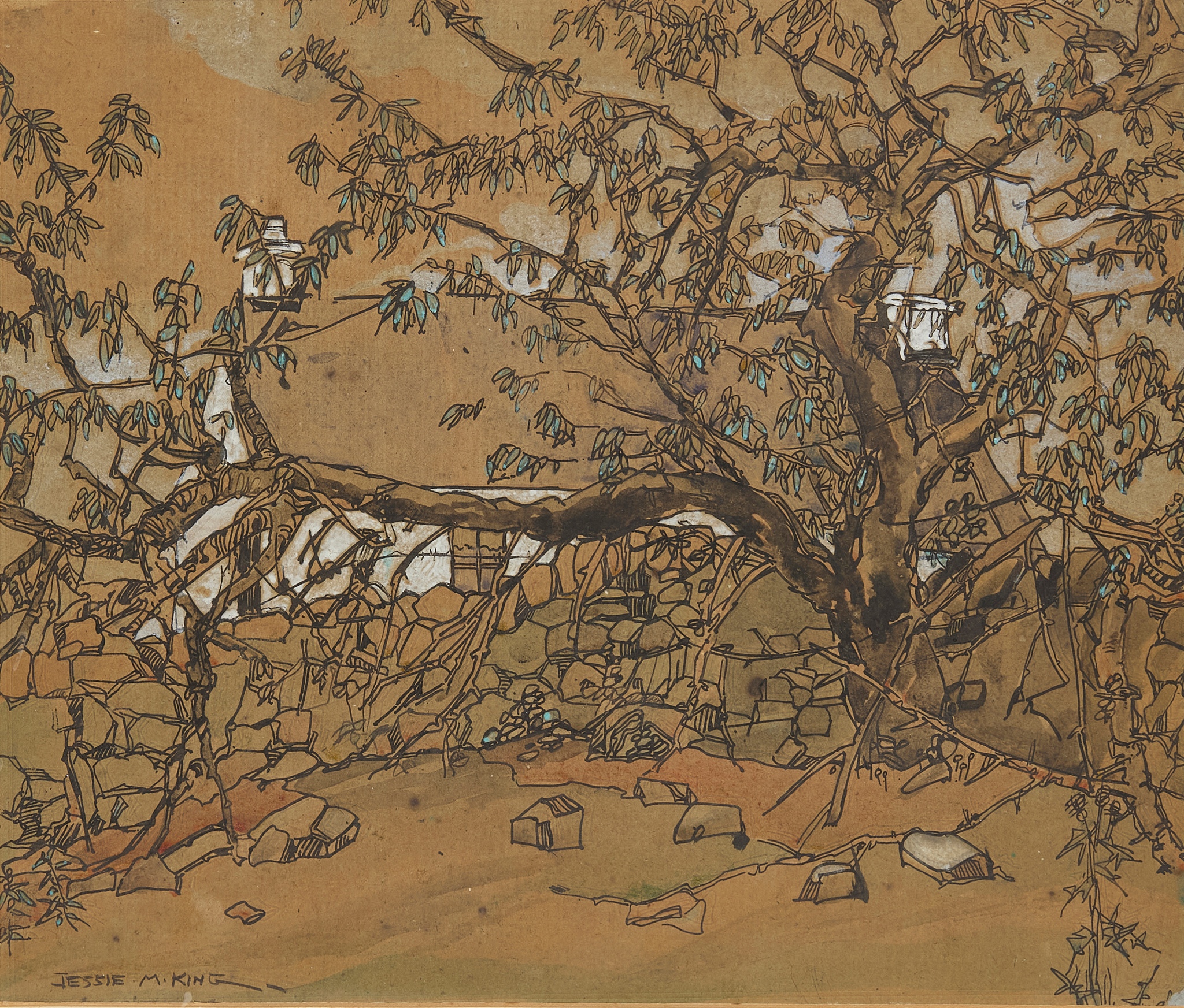 pen and ink, watercolour, bodycolour, signed lower left JESSIE M. KING