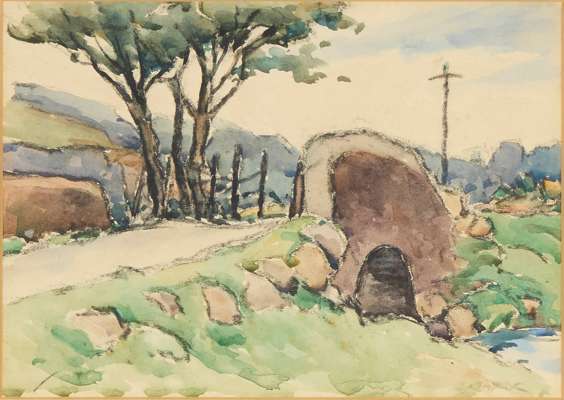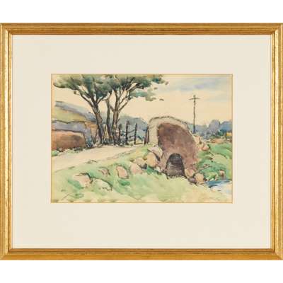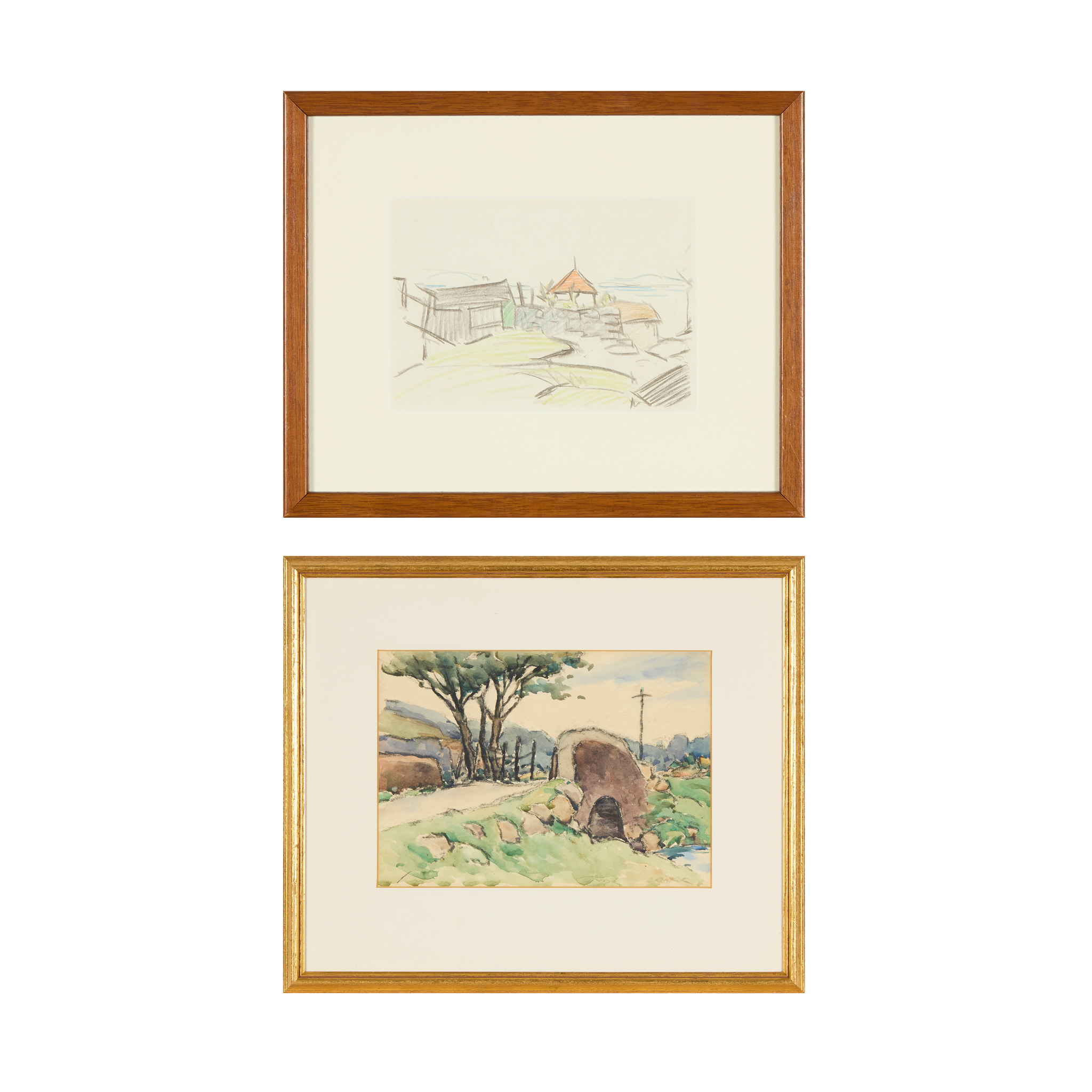 watercolour, signed E. A. TAYLOR, 23cm x 33cm (frame size 43.5cm x 51.5cm); together with another work by the same hand, LANDSCAPE WITH CHURCH, watercolour, 15cm x 21cm (frame size 30cm x 36.5cm) (2)