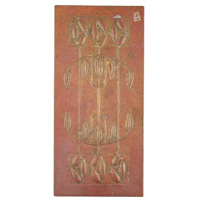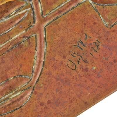 repoussé-decorated copper, brass, signed AJW 1921