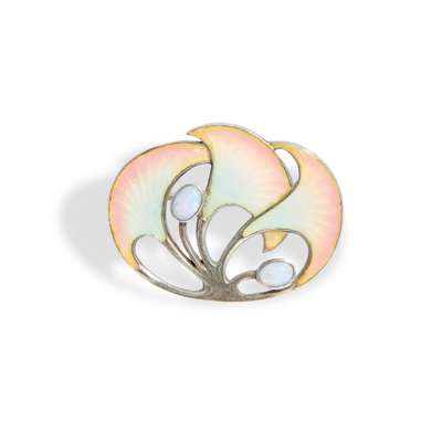 silver, enamel, opal cabochons, stamped 900, cast maker's mark