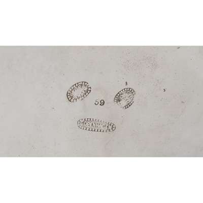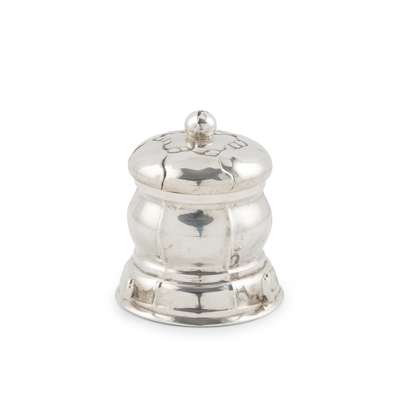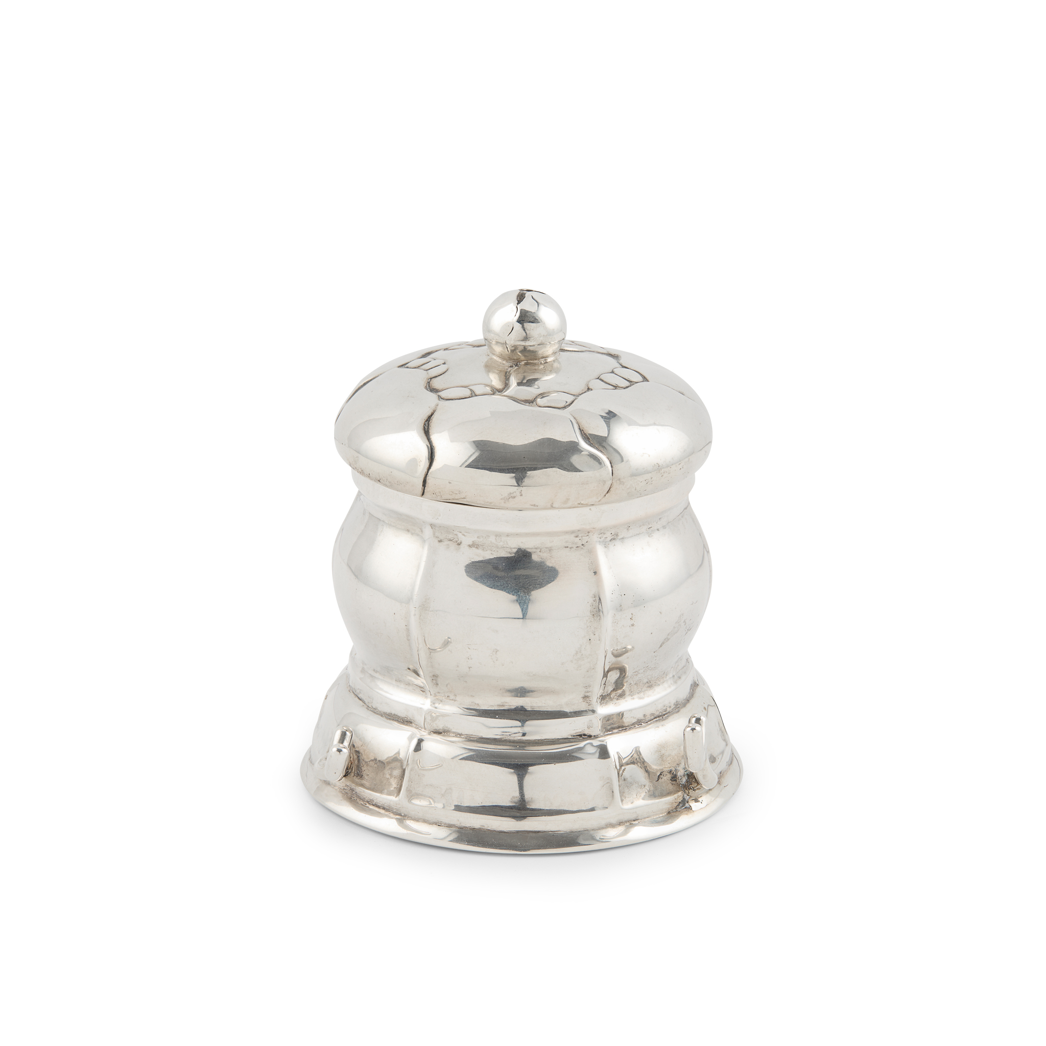 830 standard silver, with glass liner, stamped maker's mark GEORG JENSEN/ COPENHAGEN/ GJ/ 830/ S, 59