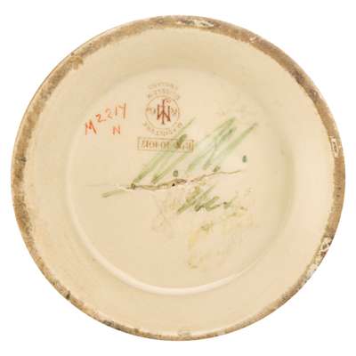 glazed and gilded earthenware, signed W. M./ DES., printed maker's mark and registration number 404017, painted pattern number M 2217/ N