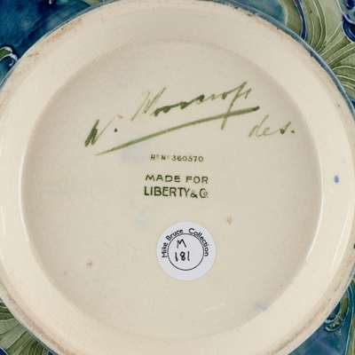 glazed earthenware, signed W. MOORCROFT/ DES., printed registration number 360570 and retailer's mark