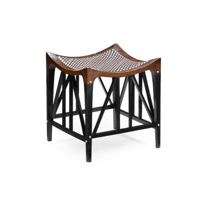 beech, ebonised beech, ivorine and with later vinyl webbing to the seat