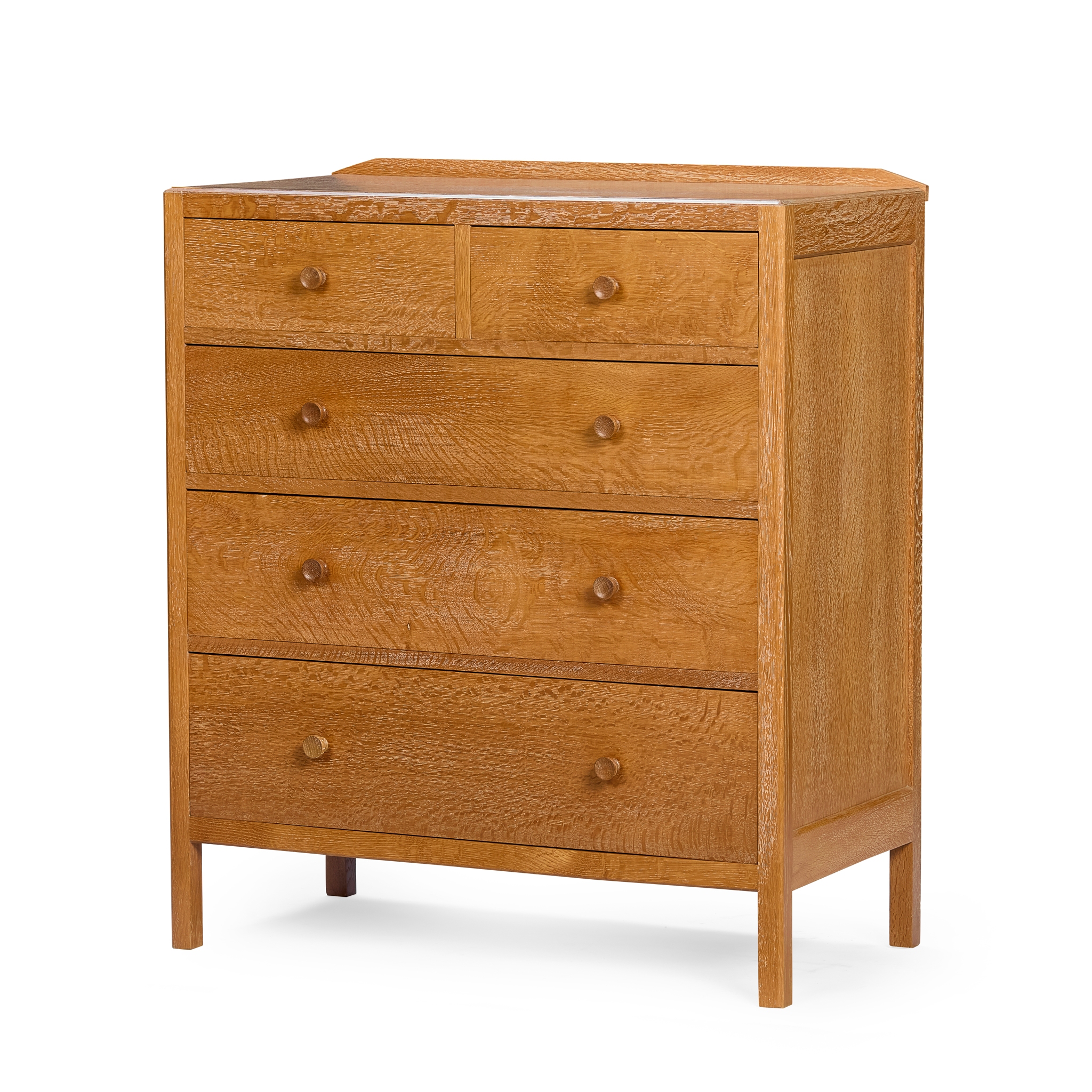 limed oak, bears inset ivorine label to drawer HEAL'S TOTTENHAM COURT ROAD LONDON W1