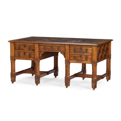 LARGE GOTHIC REVIVAL FREE-STANDING DESK, CIRCA 1870