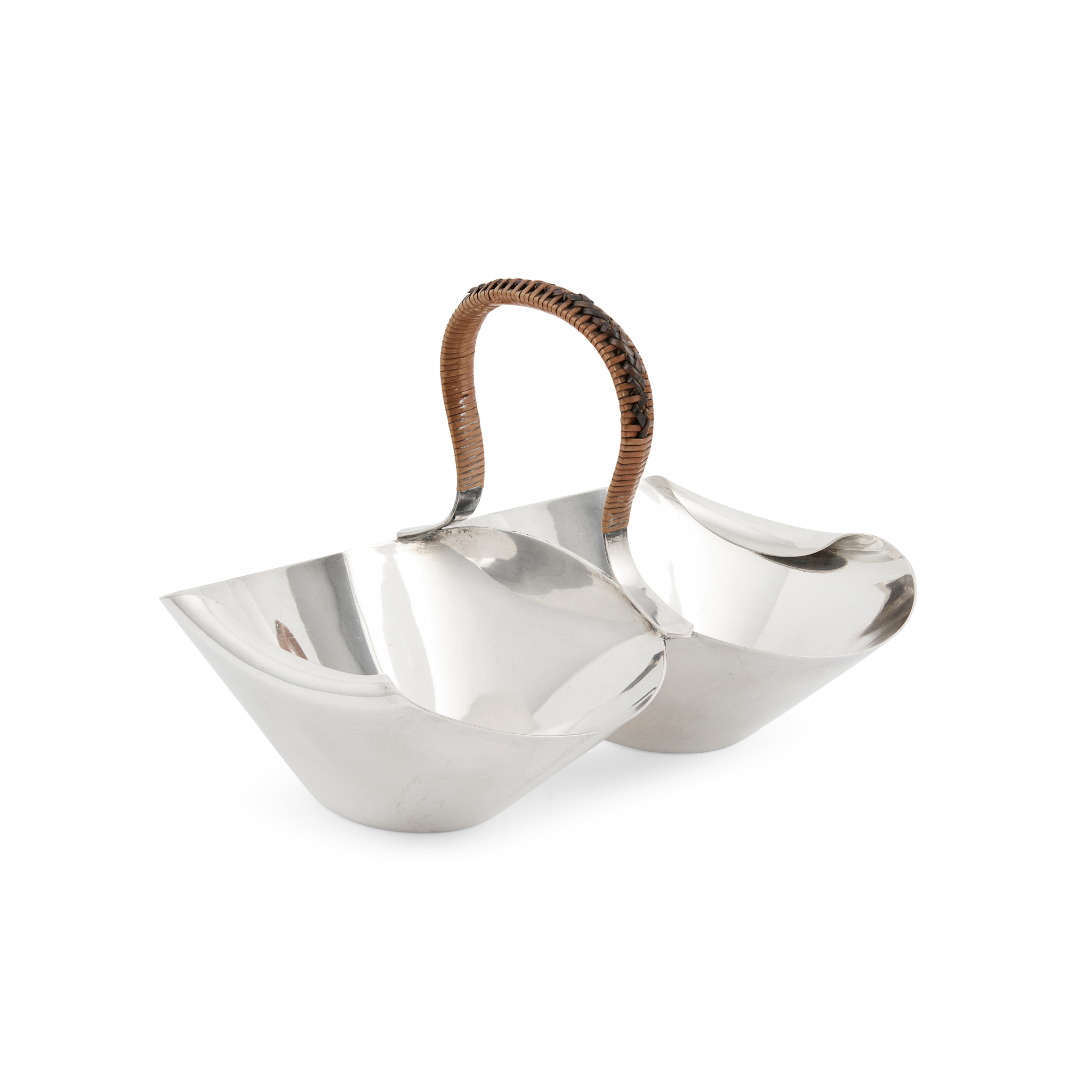 electroplated metal, with rush handle, stamped maker's mark, 2223, DESIGNED BY DR C. DRESSER
