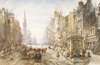 Note:The present watercolour of the Royal Mile encompasses the four streets that make up this famous area of Edinburgh, Castle Hill, Lawn Market, High Street and Canongate, forming the passage from Holyrood Palace to Edinburgh Castle. This particular scene looks towards the Castle with St. Giles Cathedral and Tron Kirk to the left, and John Knox's house on the right - an area known as the Old Town.