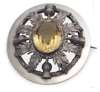 with marks for London 1849, of oval outline, with pierced thistle and foliate cast border around the central collet set oval cut cairngorm