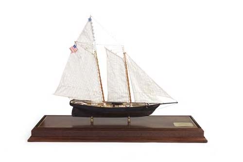 A wooden scale model of the 1851 America's Cup yacht 'America',