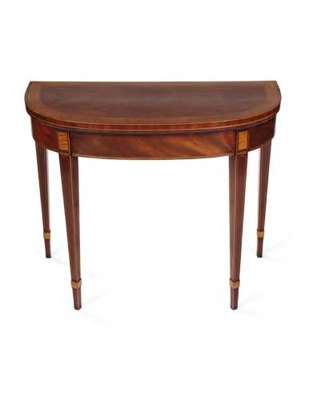 with boxwood and ebony stringing, the D top with satinwood banding above plain frieze, the square section tapered legs with panelled terminals and satinwood collars
