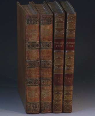 A Journey from Edinburgh through parts of North Britain. London: T.N. Longman, 1802, first edition, 2 volumes, 4to, 44 sepia aquatint plates, contemporary calf gilt, joints neatly repaired; Garnett, Thomas. Observations on a Tour through the Highlands and the Western Isles of Scotland. London: J. Stockdale, 1811, 2 volumes, 4to, map and 43 (of 52) aquatint plates, contemporary half calf, spines gilt, some spotting, hinges cracking (4)