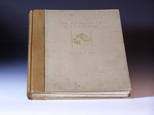 The Etchings of D.Y. Cameron. London: Halton & Truscott Smith, 1924, 4to, number 197 of 200 large paper copies, frontispiece and 95 plates, original cloth, neatly rebacked with calf, spine gilt, covers a little marked