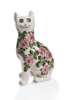 in seated pose, with applied glass eyes, painted with pink cabbage roses, painted marks 'Wemyss' (damages)
