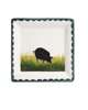 of square form, painted with a black pig, within green scalloped border, impressed mark 'Wemyss' (fine hairline)