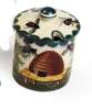 of cylindrical form, painted with bees around a bee skep, painted marks 'Wemyss' (restored cover) (2)