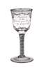 A large bucket bowl goblet decorated by the Beilby family of Newcastle, the white enamel Rococo scroll cartouche enclosing the dedication 'Success to the Town and Trade of LEITH' in white enamel, and with a later gilt line, the stem with two spiral opaque twists on a circular domed foot